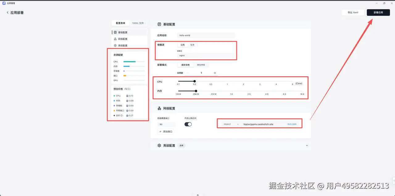 - 我用图形化界面取代了命令行,3 分钟就上线了后端服务。 过去我需要 SSH 登录服务器,用 Docker 命令或脚本来部署。在 Sealos 上,流程极其清晰:打开「应用启动器」,选择“创建新应用”;直接在输入框里填入我打包好的 Docker 镜像名,例如