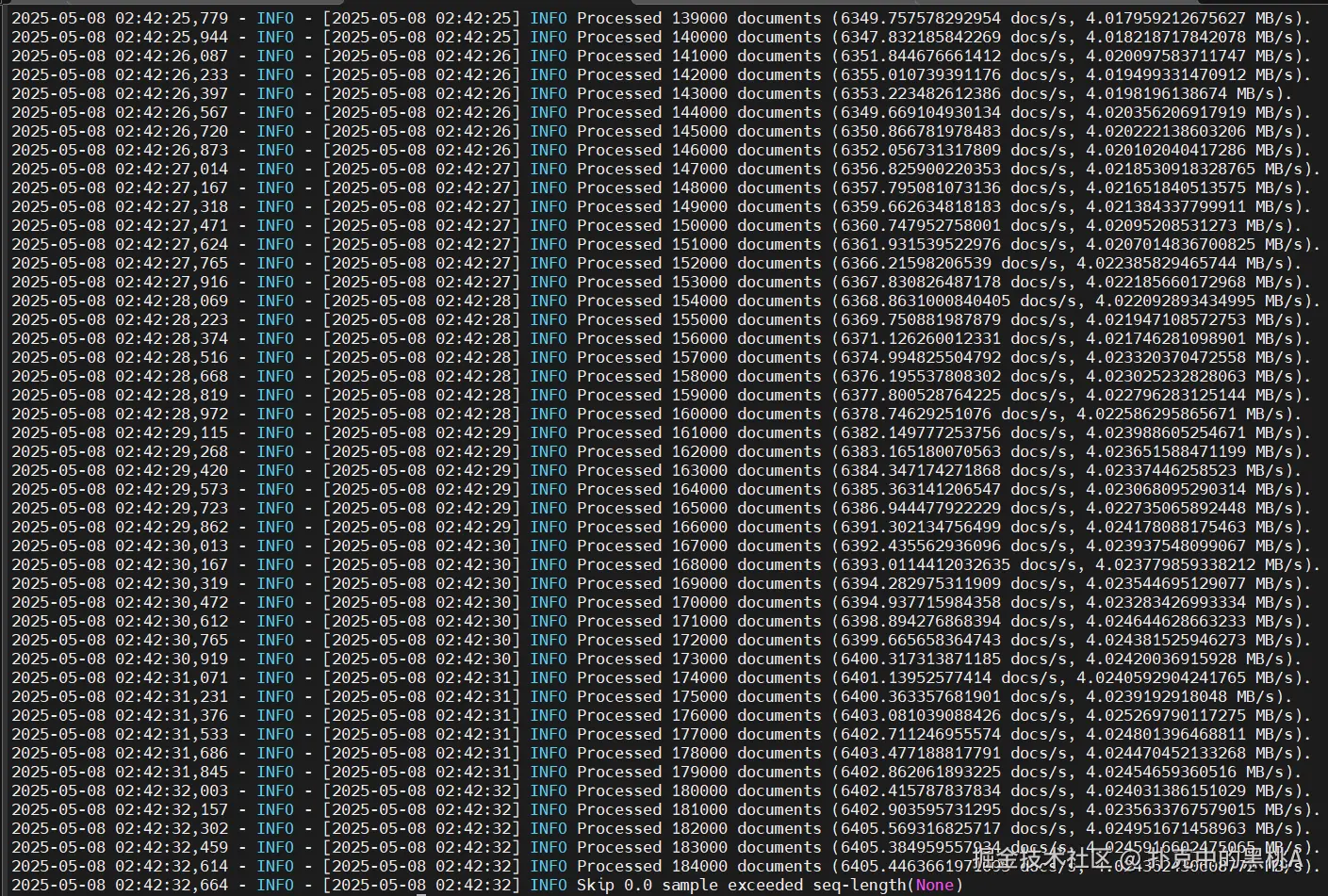 在终端看到输出Preprocess done, total samples: 57000,这就代表已经启动成功了。