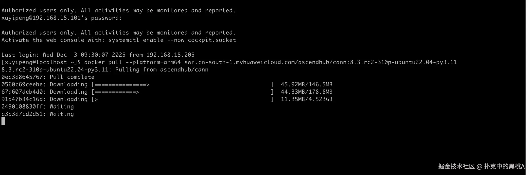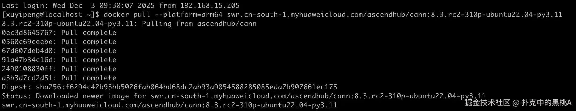 docker pull --platform=arm64 swr.cn-south-1.myhuaweicloud.com/ascendhub/cann:8.3.rc2-310p-ubuntu22.04-py3.11