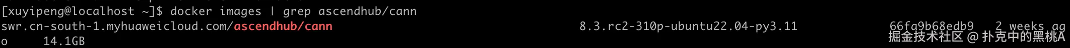 正确做法是用docker images | grep ascendhub/cann查看实际镜像ID。我这里实际ID是66fa9b68edb9,并替换权重路径占位符为实际路径(/home/xuyipeng/weights):