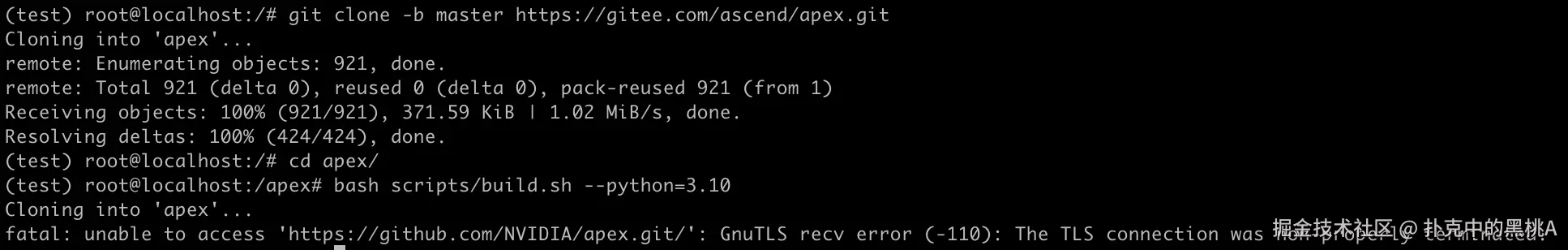 昇腾官方在 Gitee 维护了适配 NPU 的 Apex 分支,需克隆指定仓库: