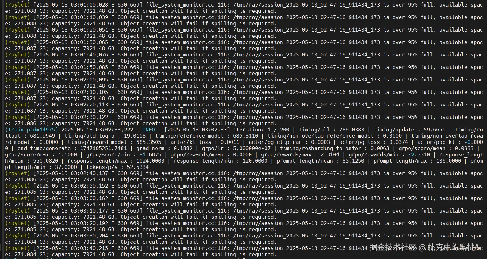 终端 / 日志输出[INFO] Training started with model: Qwen2.5-7B, dataset: orz_math_57k;