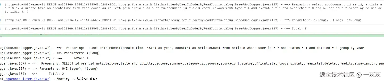 相信各位javaer都会有类似的经历:面对控制台中输出的MyBatis日志,看到类似"Preparing: SELECT * FROM user WHERE id = ? AND status = ?"和"Parameters: 123(Long), active(String)"这样的信息,却需要手动将参数值代入SQL模板中,才能知道这条SQL实际执行的是什么?这个过程不仅繁琐,而且容易出错,尤其是在处理复杂查询时。