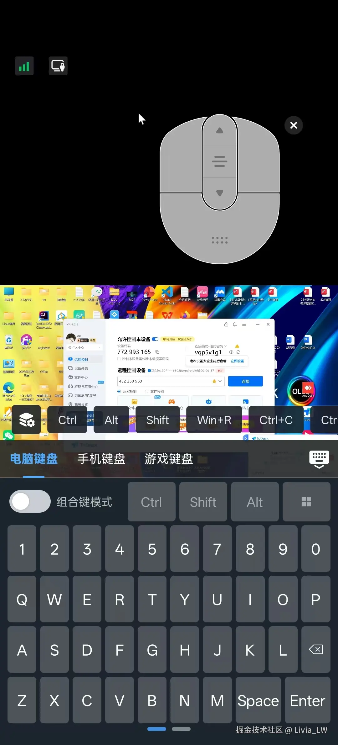 手机连电脑同样挺省心的,跨平台适配也还行,同账号一键就能连,不过有个很难受的地方, 只要打开键盘就会自动放大屏幕,不能自己操控, 这个操作看个人喜好程度。