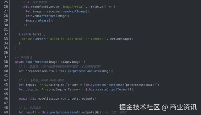 · 接入鸿蒙AI框架: 这是最关键的一步。我们没有直接在CPU上跑推理,而是使用了鸿蒙提供的ohos.ai.engine(此处API为示意,请以官方为准),而是使用了鸿蒙提供的ohos.ai.engine(此处API为示意,请以官方为准)能力。