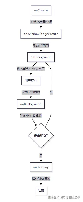 对UIAbility生命周期的精准把控是实现完备度的关键。一个典型的生命周期流程如下: