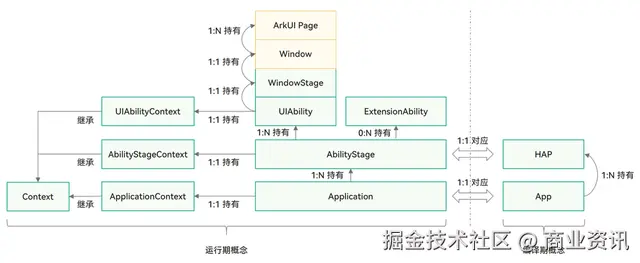 · WindowStage:管理UIAbility对应的窗口,处理窗口级别的事件,如沉浸式、窗口大小变化等。
