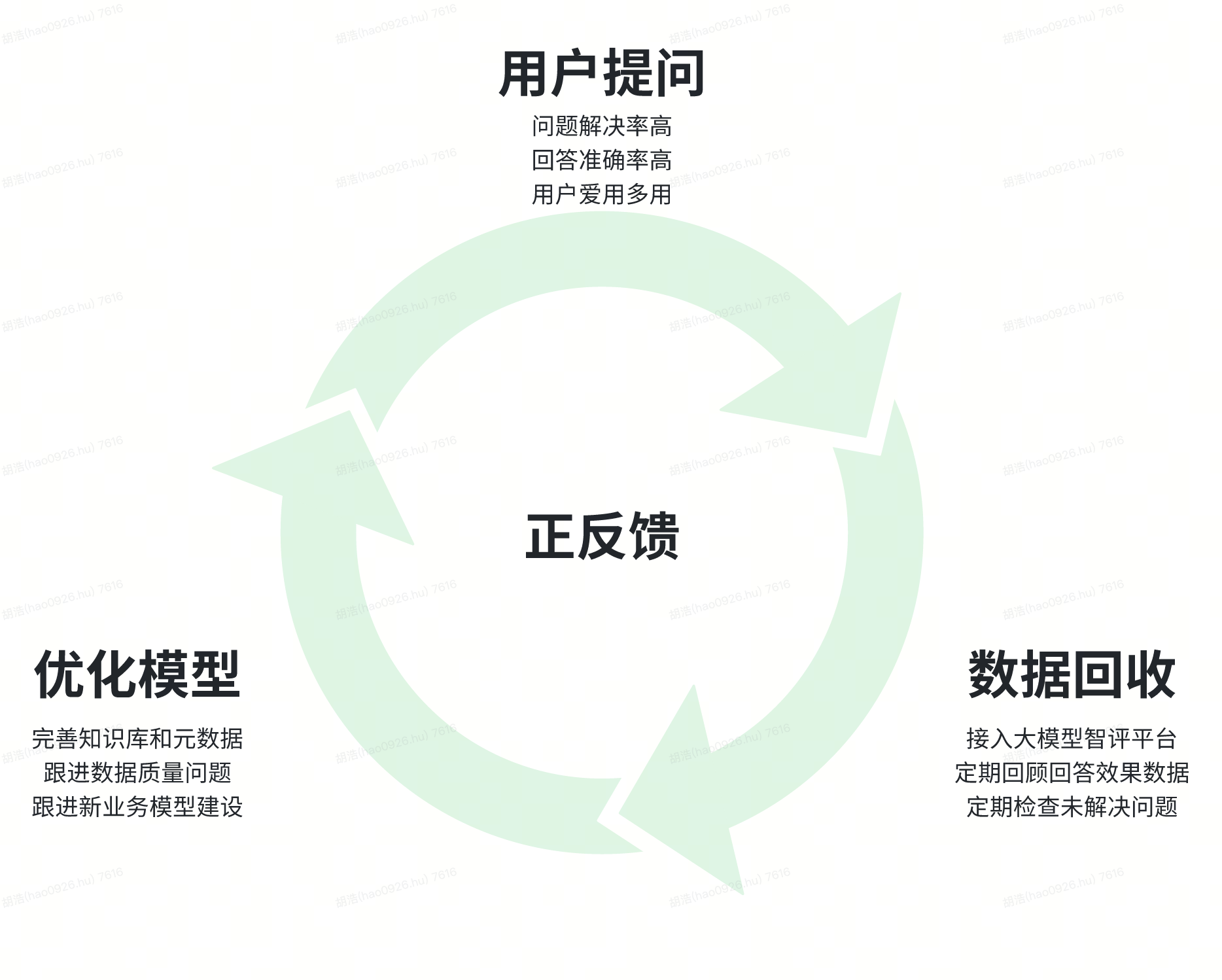 通过用户提问->数据回收->优化模型 这个运营流程,不断正反馈和优化智能答疑效果,将整个项目往更好的方向推动。