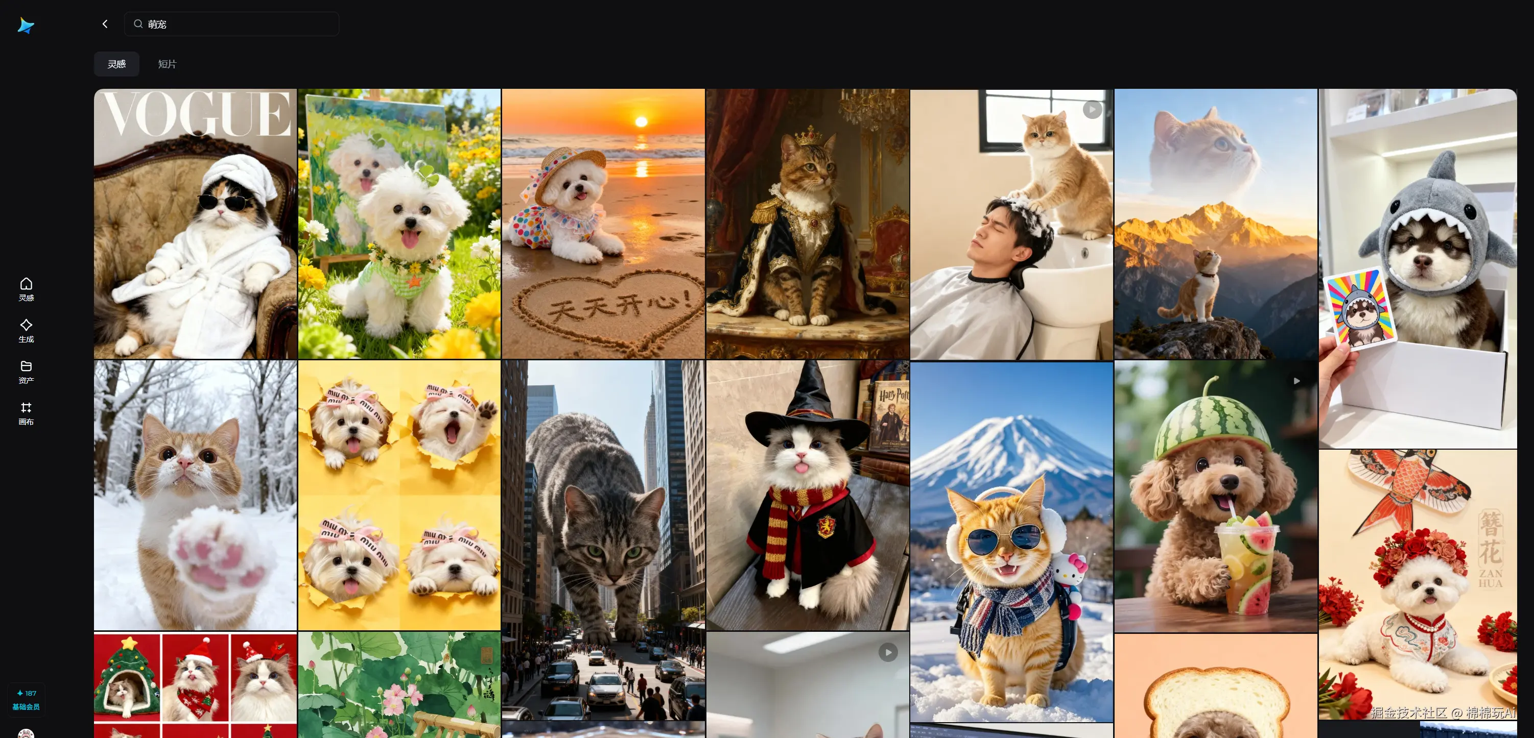 打开它的**【灵感广场】**,简直就是闯进了 AI 界的“萌宠奥特莱斯”。