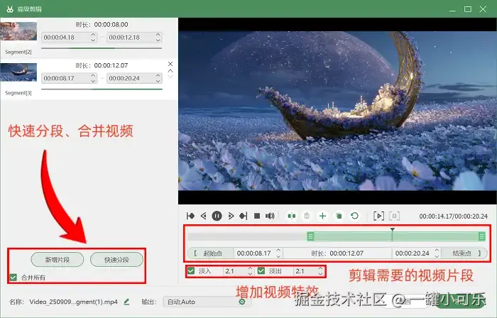 步骤三:录屏完成后系统自动跳转至预览界面,若用户对视频效果不满意,可点击下方 【高级剪辑】 工具,对视频进行后期删除、分段以及添加特效等处理。