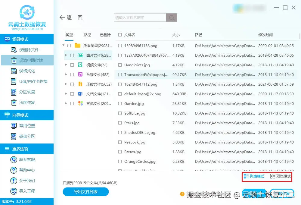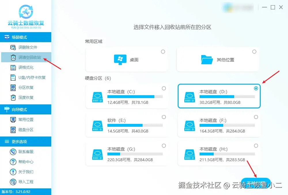 当文件未备份且已从回收站清空,把文件拖入回收站怎么恢复?有效的途径便是借助数据恢复软件。在众多数据恢复软件中,云骑士数据恢复软件因其较高的恢复成功率、友好的用户界面和全面的功能而备受推荐。