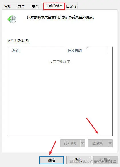 如果系统创建了还原点,这里会列出可用的历史版本,选择最接近删除时间的版本,点击“还原”即可。
