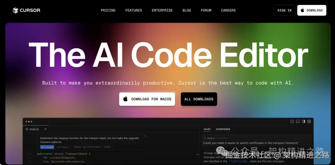 讲真,现在写代码的 IDE ,Cursor 绝对算头号网红!它自带的 AI 助手特别能帮你省事,直接把需求告诉它,Cursor 就能帮你写代码、查 bug、改逻辑,甚至自动重构,流程爽到飞起。你看结果、提改动就行,代码的细节交给 AI 搞定,完全贴合 Vibe Coding 那种“沉浸-反馈-再调整”的风格。