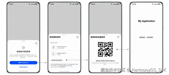 用户在其他设备上登录应用或网页时,需要验证用户的身份,可以使用通行密钥服务的跨设备扫码认证能力。
