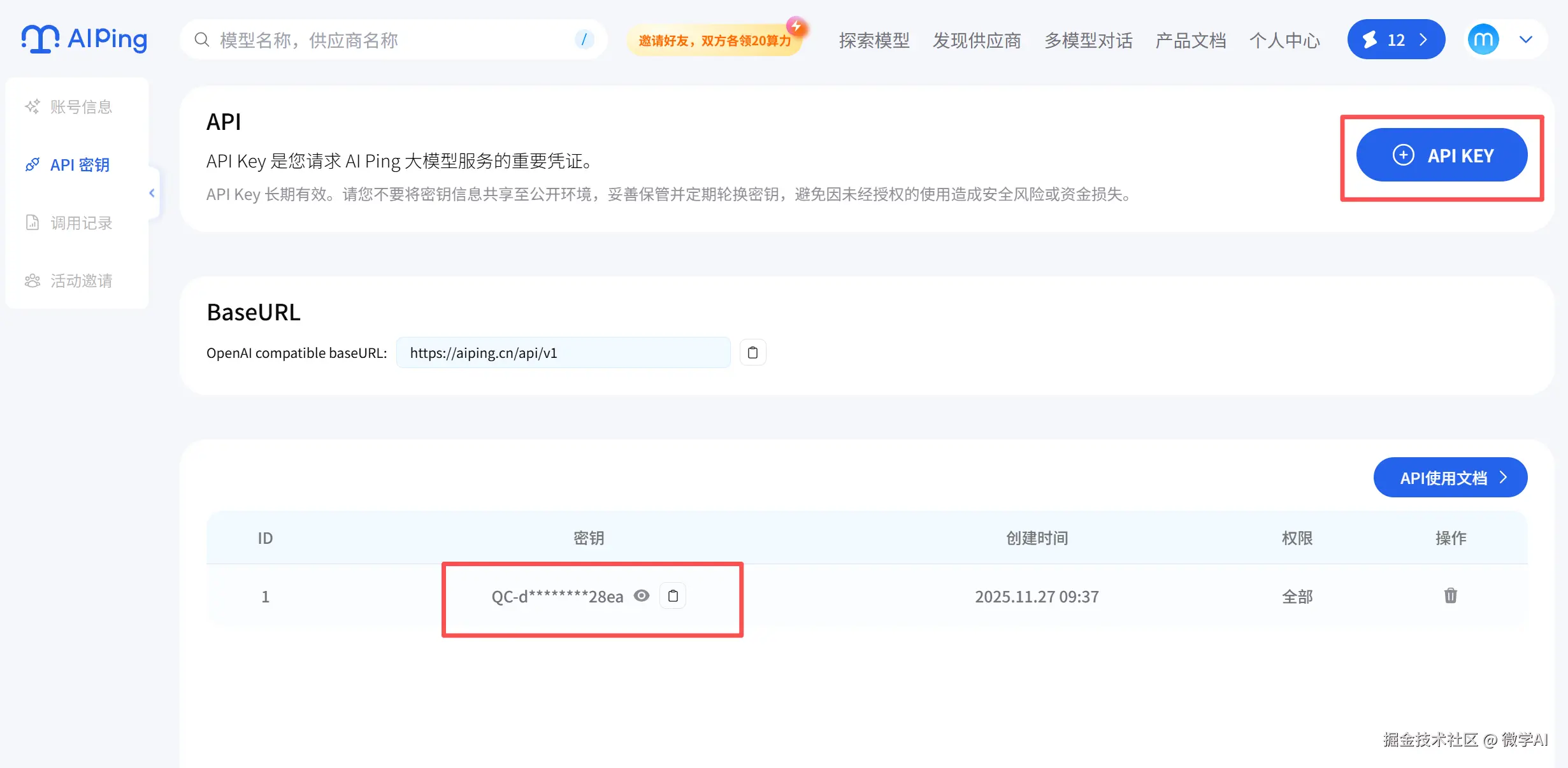 四、获取免费的 AI Ping API 密钥