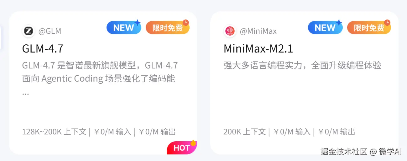 HOT - 热门:GLM-4.7、GLM-4.6、MiniMax-M2、DeepSeek系列等