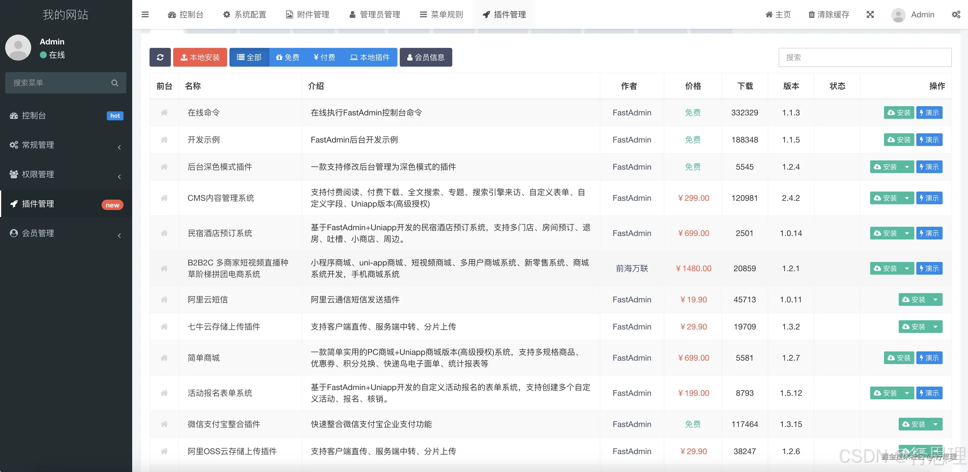 插件部分才是系统的核心,需要什么系统,下载对应的插件就可以了,需要商城下载商城的插件、需要CMS下载CMS插件,插件还是挺丰富的