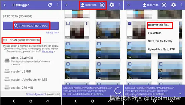 DiskDigger 是一款相机照片恢复应用程序,可以恢复Android手机中已删除的照片。您可以从 Google Play 下载并免费恢复照片和视频。但请注意,要恢复照片的原始质量,您需要root手机并获取此应用程序的专业版。