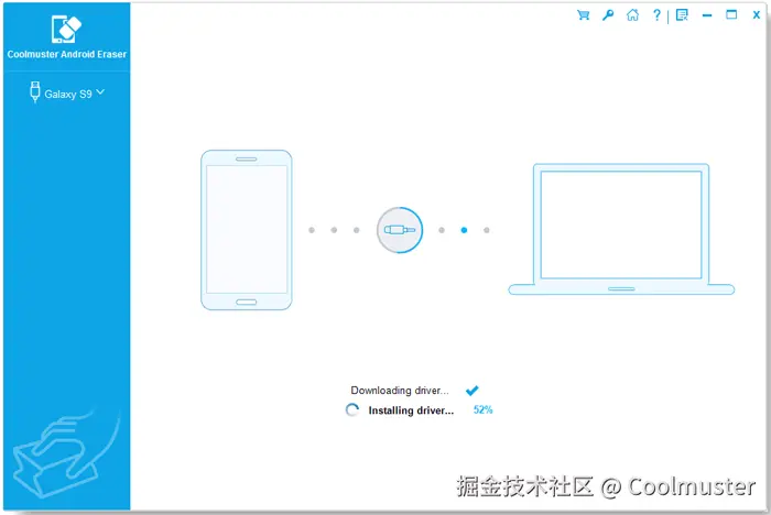 01首先,请在您的系统上安装、下载并激活Coolmuster Android Eraser。然后,使用 USB 数据线将您的Android设备连接到电脑。