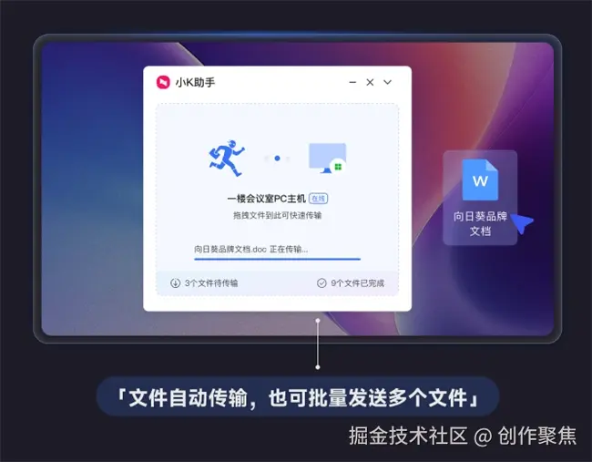 “闪传文件”则彻底革新了远控传文件的方式,过去复杂的端口设置与步骤被简化为拖拽即传。开启悬浮窗后,只需将文件拖入窗口,无论大小皆可极速送达,并伴有传输提示,效率大幅提升。