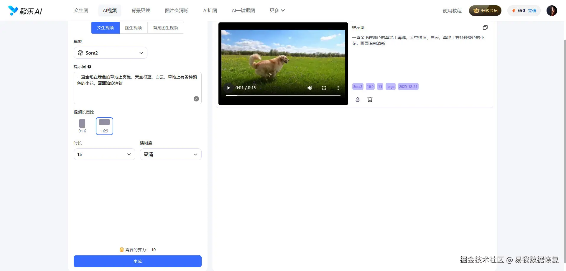 视频时长选择: 视频时长可选择10秒或15秒,精准匹配短视频平台的流量偏好与宣传素材的时长需求。