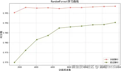 - 随机森林:通过Bagging集成与特征采样天然具备正则化效果,小样本时存在轻微欠拟合,数据量增加后泛化能力稳步提升,无显著过拟合;