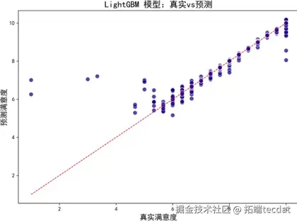 为构建更精准的满意度预测模型,我们对比了随机森林、XGBoost、LightGBM、CatBoost四种主流机器学习算法,通过拟合效果图、学习曲线及性能指标综合评估模型优劣。