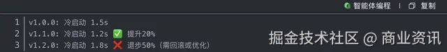 通过APMS数据,我们发现冷启动时间平均3.2秒,远超行业标准的1.5秒。其中,初始化阶段占用了1.8秒,成为优化重点。