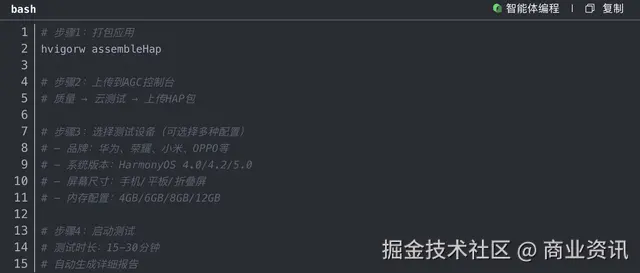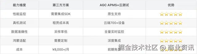 这让我们意识到,必须引入科学的性能监控和测试体系。经过技术调研,我们选择了华为AGC的APMS(应用性能管理服务)和云测试服务。
