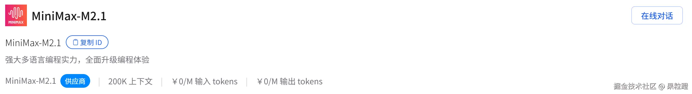 - 超长文本处理无压力:借助 MiniMax M2.1 高达 200K 的上下文窗口,你可直接上传数万行的开源项目代码进行深度分析,无需担心账单支出,尽享高效便捷的开发体验。