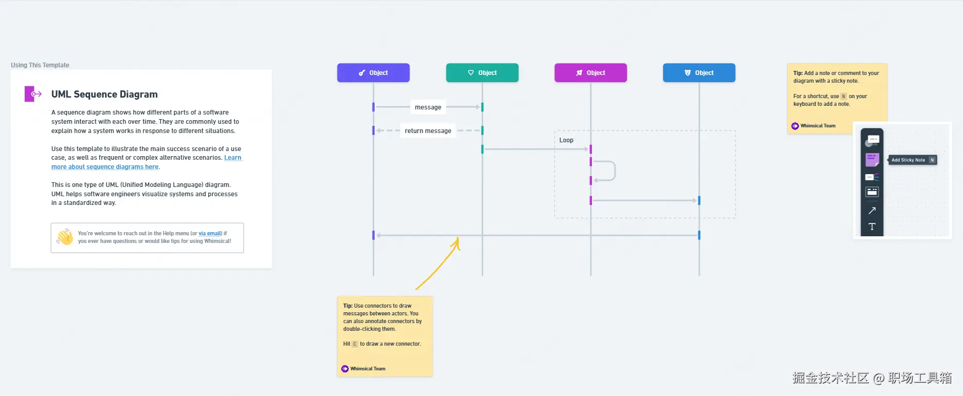 Whimsical是一个以速度和简洁著称的协作套件,其产品哲学是“快”。它将流程图、线框图、思维导图和文档等核心功能整合在一个极其简约的界面中,旨在帮助团队以最快的速度沟通和表达想法。在UML绘图方面,Whimsical同样贯彻了这一理念,为用户提供了轻量级但异常高效的体验。