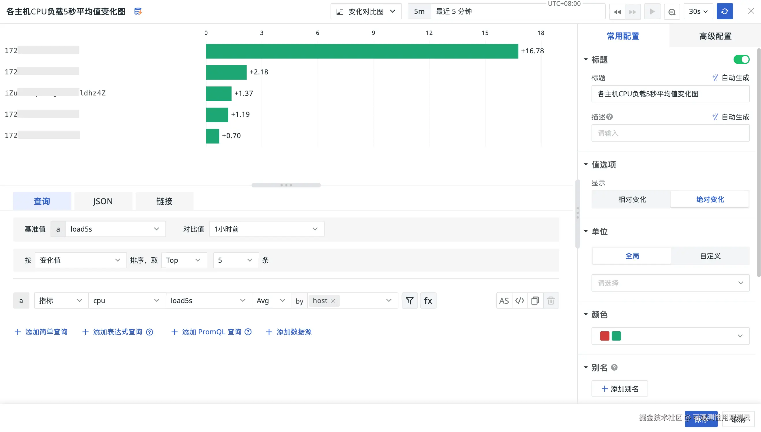 1、新增图表类型“变化对比图”:将指定指标在当前时段与历史同期(如昨日同一时刻、上周同日)的数值或其他指标进行量化对比,并以直观方式展现变化幅度,从而快速识别异常波动;