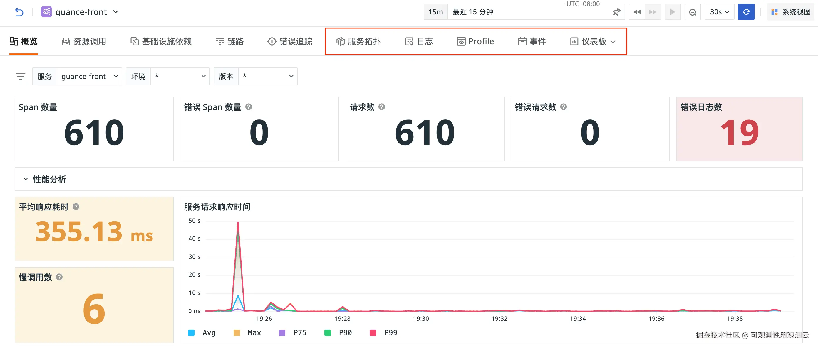 - 新增 Tab 页:服务拓扑、Profile、仪表板。