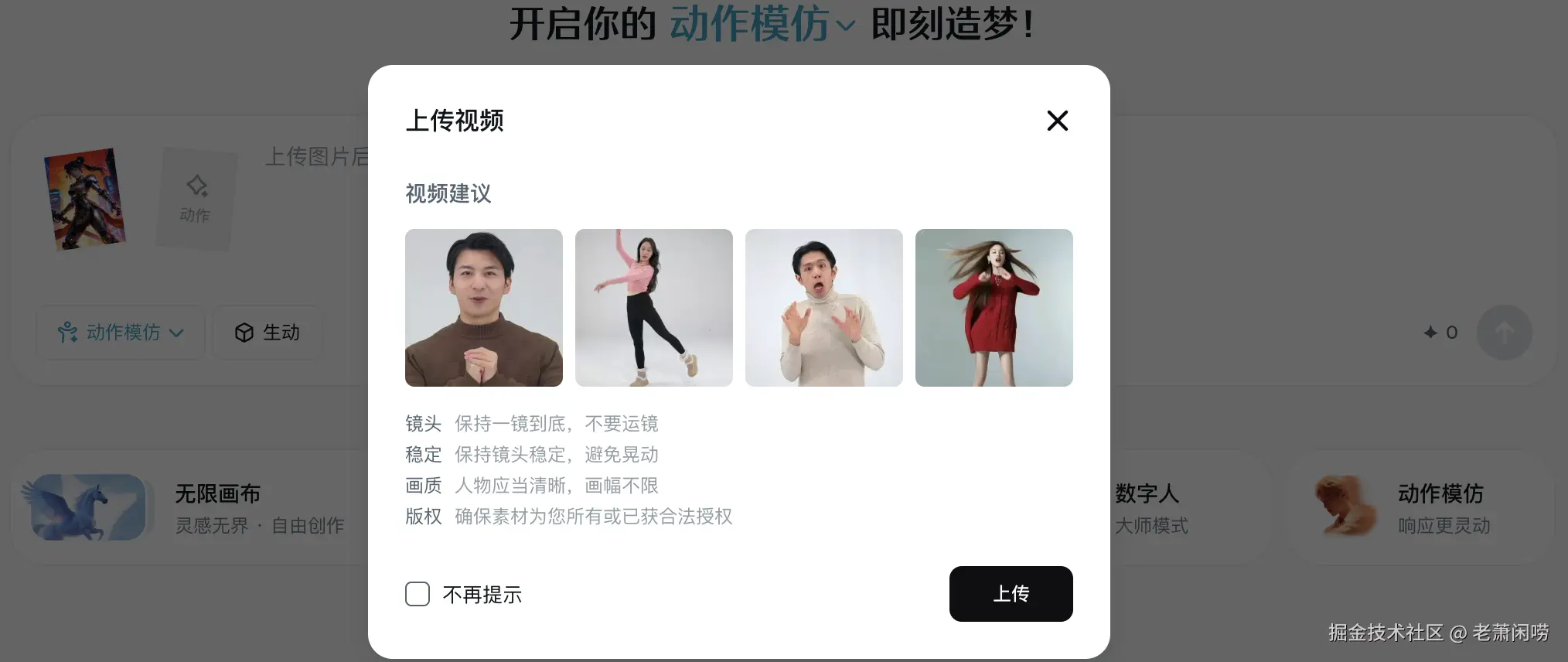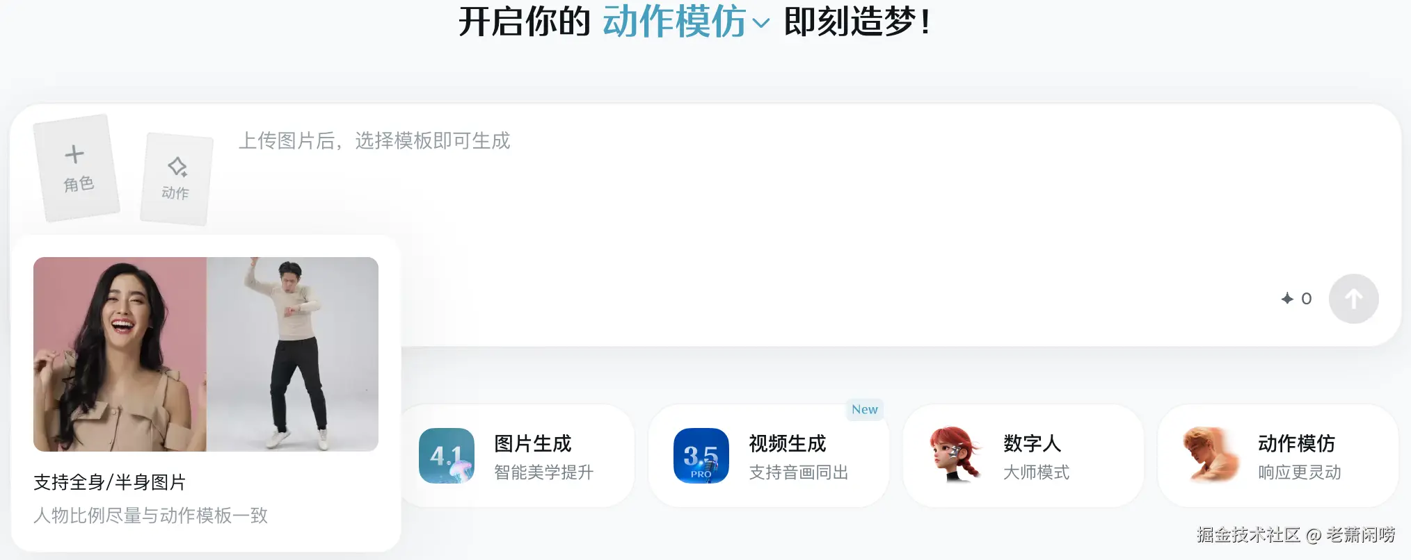 - 上传动作视频-> (这是模仿动作的核心)。