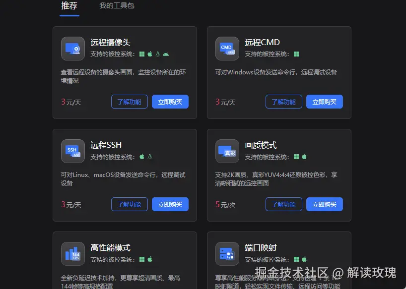 主页面中向日葵提供了一些工具包,主要包含了一些付费工具,根据个人需求可以自行使用,但对于普通用户可能就比较鸡肋了