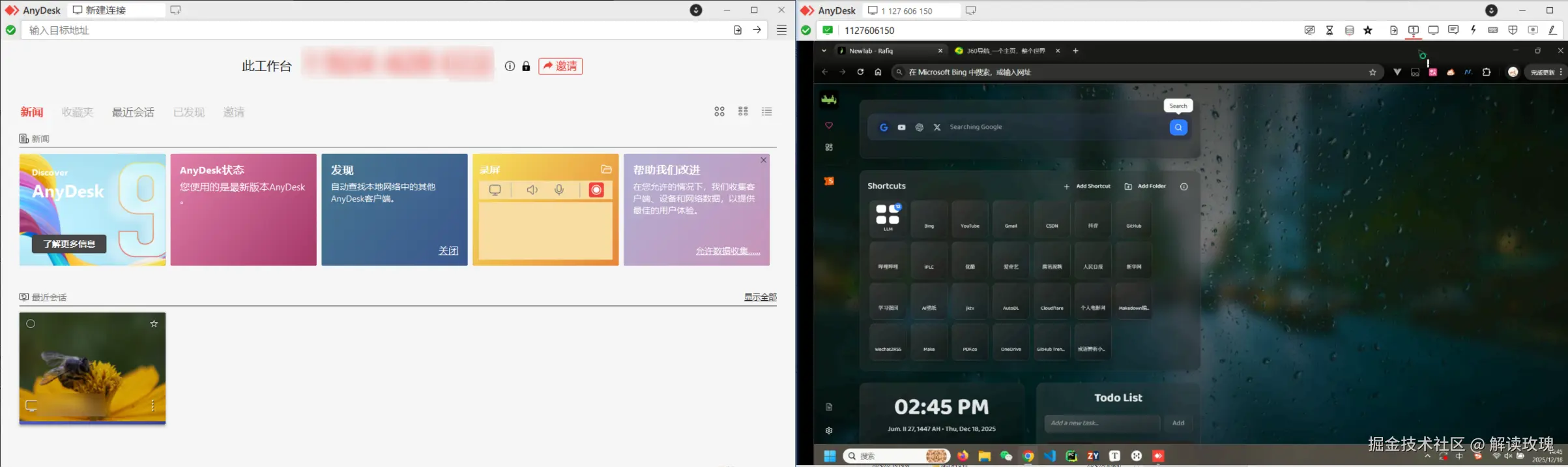 AnyDesk的远控界面虽然设计较为简约复古,但其功能布局合理,用户体验良好。远程控制导航栏位于界面的顶部,提供直观的连接和管理选项