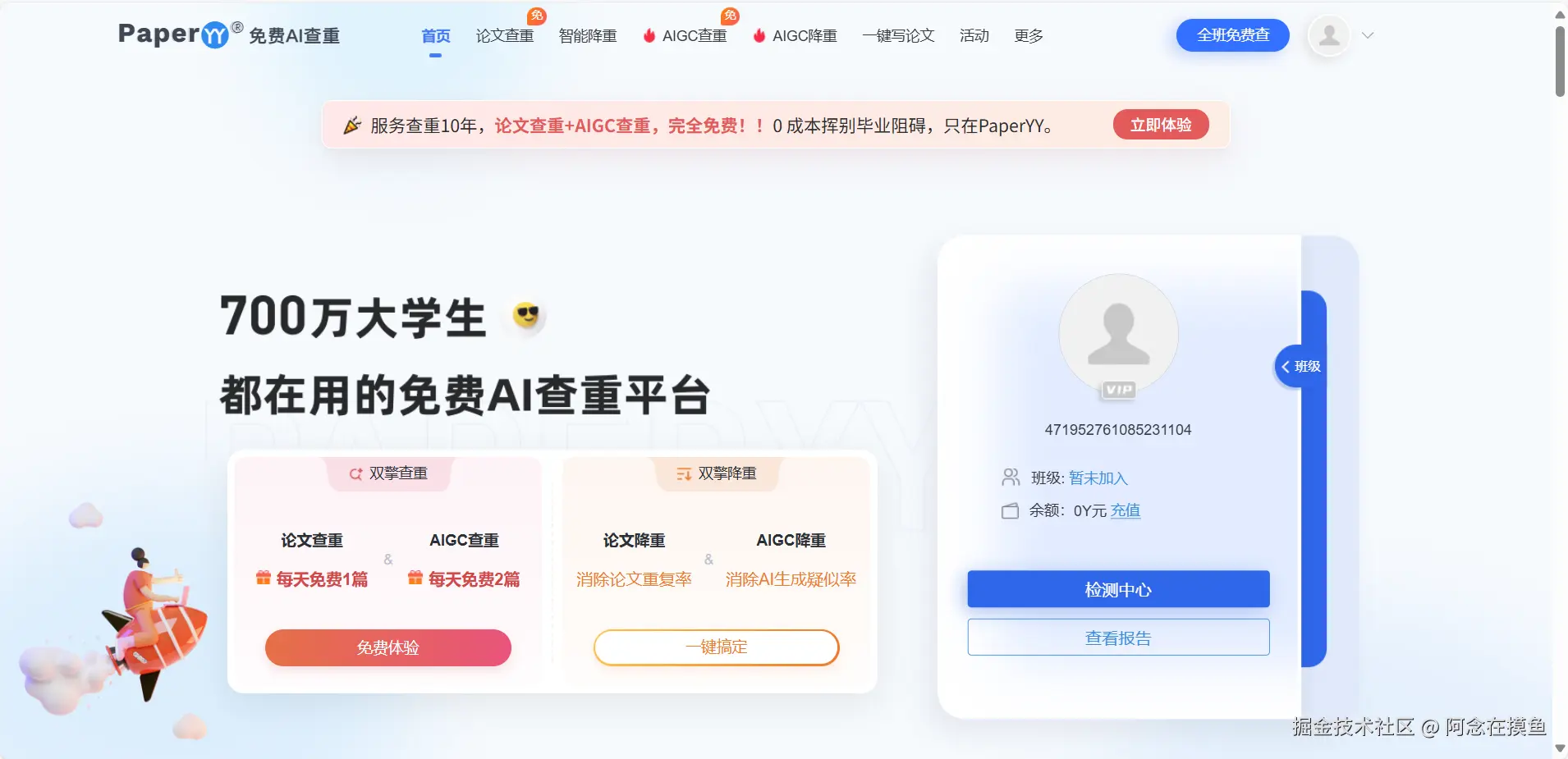 大家以前查重都用过,现在它也有aigc免费降重的功能(部分限制)。