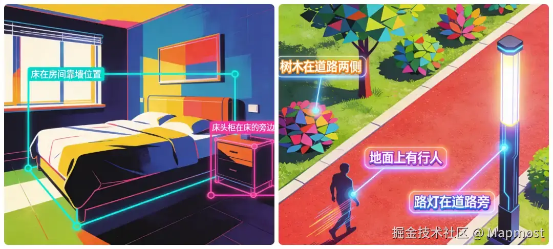 语义感知让LOD(细节层次)不再是粗暴的距离衰减,而是"重要性感知":交通标志永远清晰,远处灌木可以简化;流式传输时,关键设施优先加载,装饰性元素延后渲染。