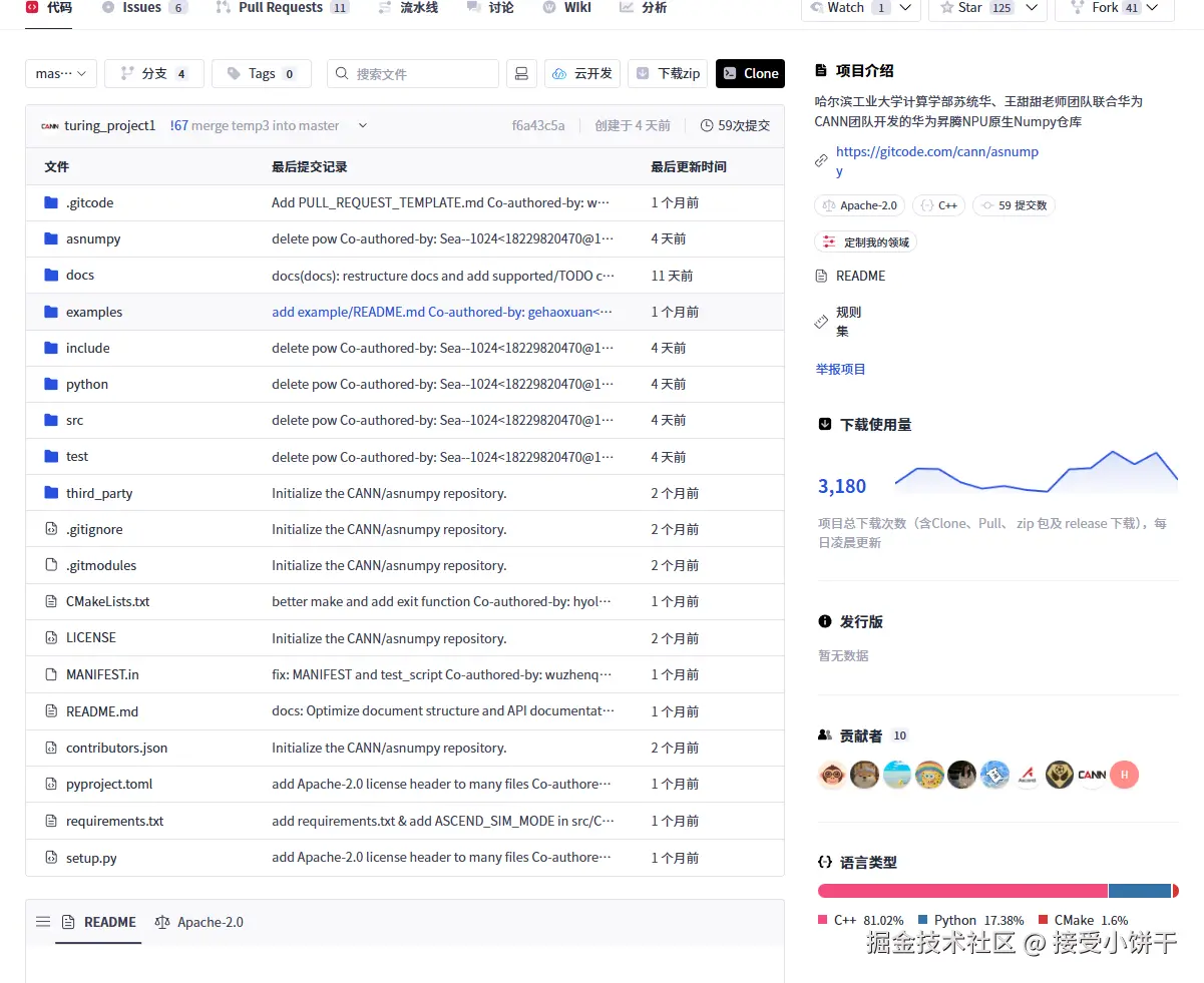 AI在近几年发展的越来越快,异构计算架构已经成为了提升 AI 算力效率的关键支撑。华为推出的 CANN(Compute Architecture for Neural Networks)作为昇腾 AI 处理器的核心软件栈,不仅在工业界广泛应用,也通过开源方式向全球的开发者开放它的能力。2025 年,CANN 正式将开源主阵地迁移至 GitCode,标志着其社区生态建设迈入新阶段。