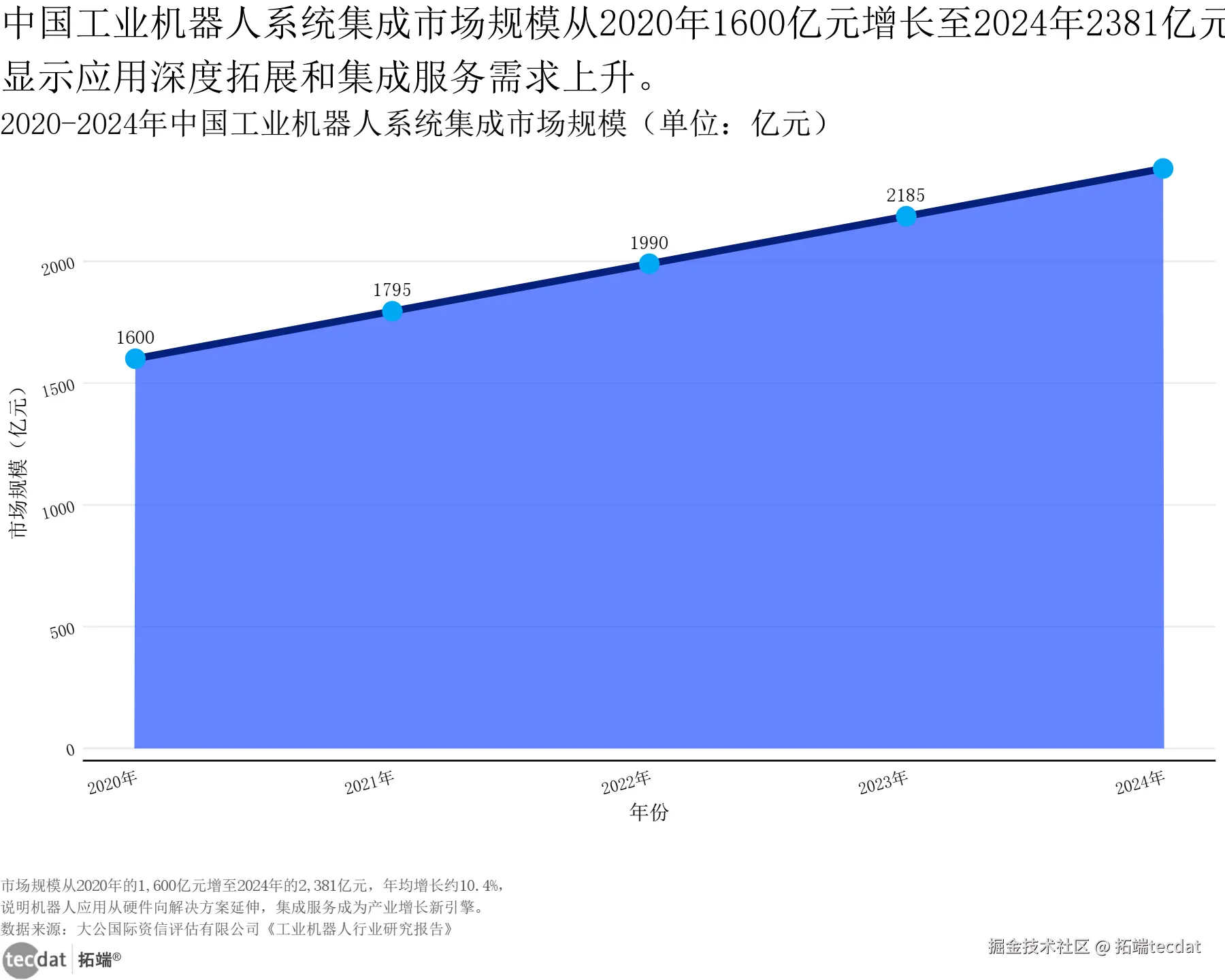 2020-2024年中国工业机器人系统集成市场规模堆积面积图表9数据EXCEL及图表PDF模板已分享到会员群