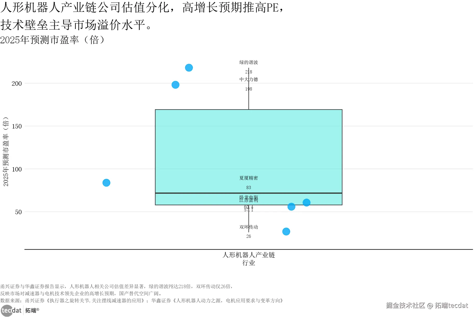 人形机器人产业链公司2025年预测市盈率箱线图表12数据EXCEL及图表PDF模板已分享到会员群