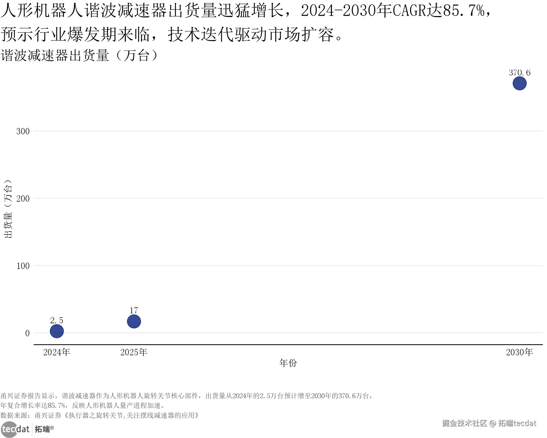 人形机器人谐波减速器出货量增长散点图加趋势线图表10数据EXCEL及图表PDF模板已分享到会员群