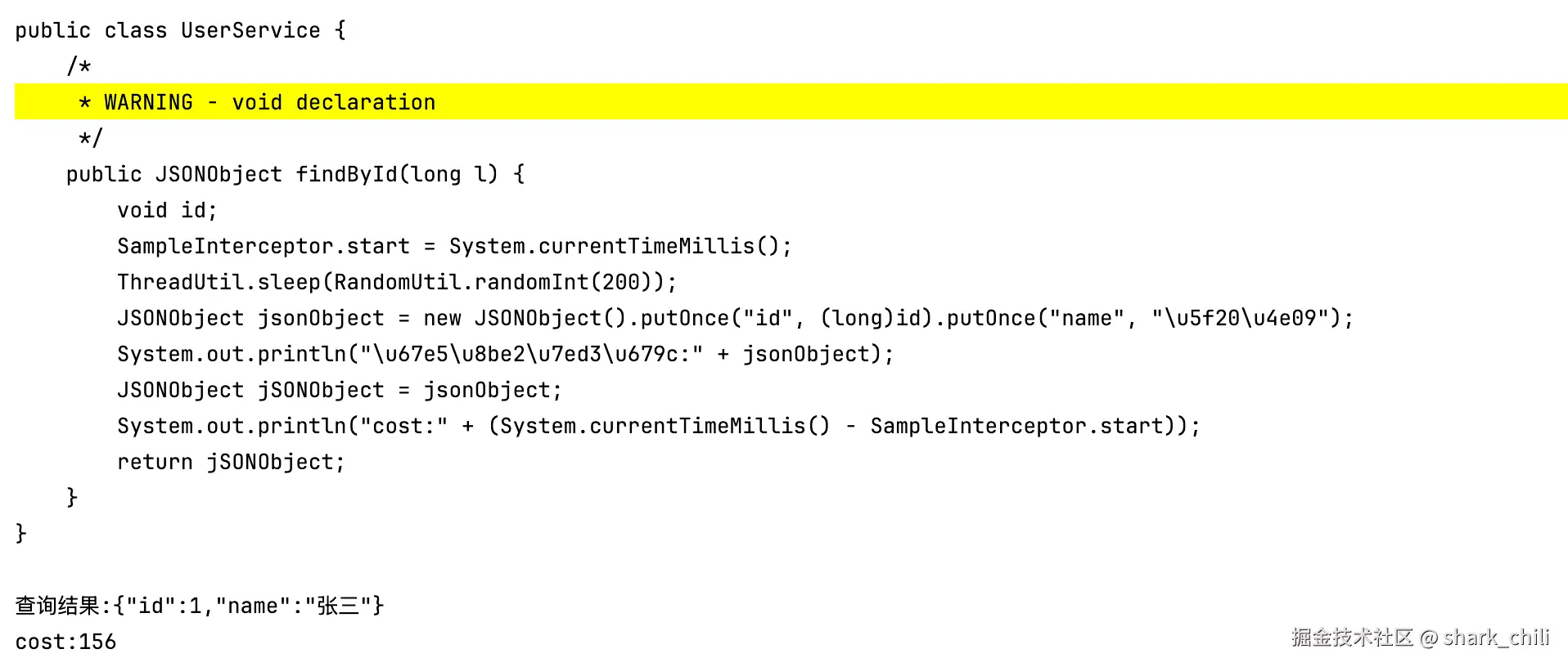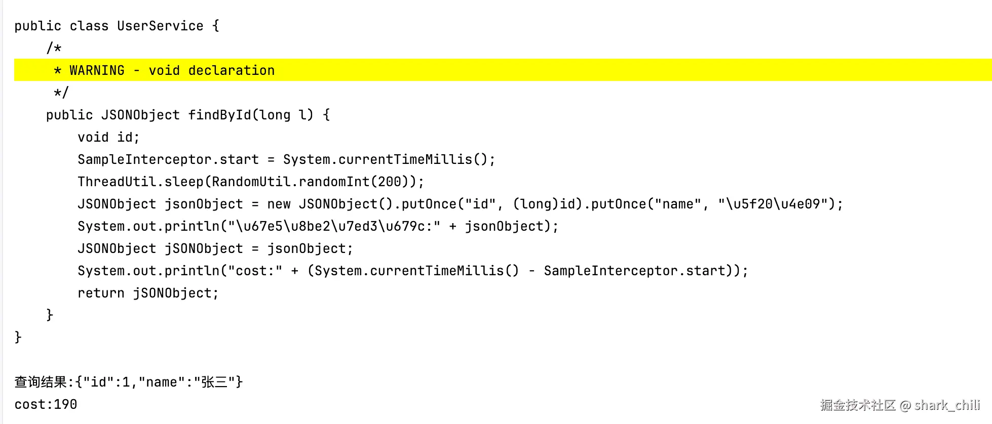 因为java是一门半截式半编译的语言,所以在运行时就有了很大的可操作空间,例如我们日常的web接口有大量的业务查询逻辑,就像下面这段代码: