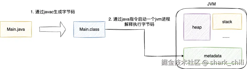 在此之前,我们还是需要了解一下java程序的执行过程,方便对后文的理解,按照周志明老师《深入理解jvm虚拟机》说法,对应java程序分为前端编译和后端编译,这里前端编译我们可以理解为程序运行前的操作,该阶段会将写好的java代码通过javac编译器编译为虚拟机所能理解的字节码。