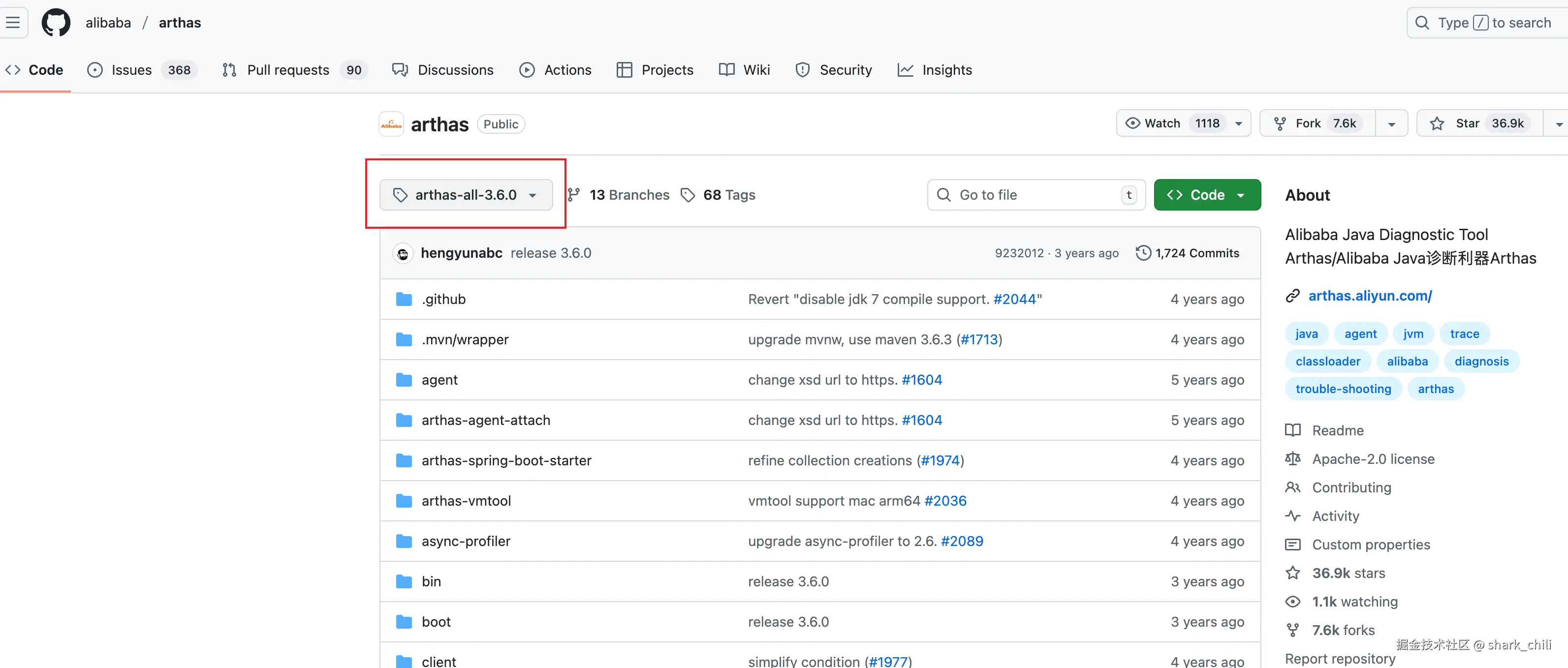 - 克隆或者下载arhtas-3.6.0版本:github.com/alibaba/art…