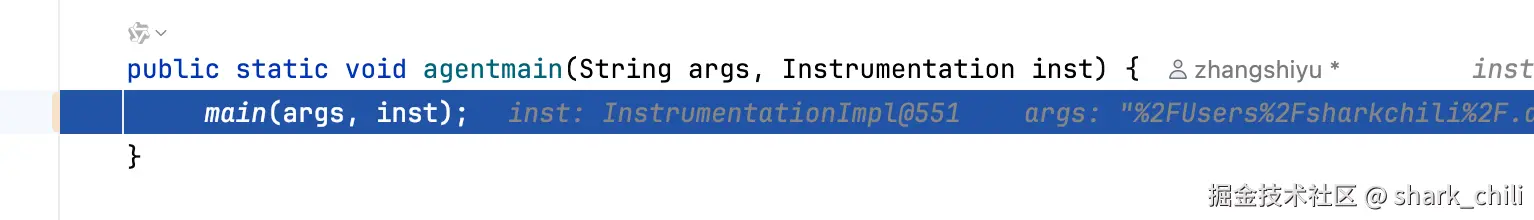 而另外一种则是运行时增强,最典型的运用就是artahs,运行时增强的实现则是通过实现agentmain函数,对应我们也可以在arthas-agent看到这个函数的实现: