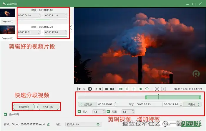 第三步,当录制操作结束,软件将自动弹出视频预览界面,此时用户可通过点击下方的 【高级剪辑】 功能,对视频执行进一步的优化操作。