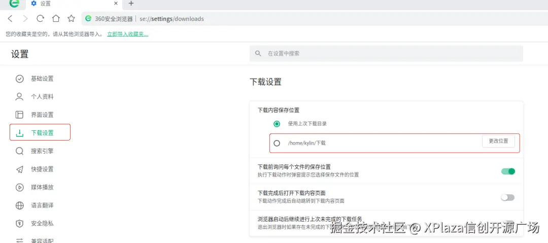 Foxmail邮箱等其他软件,如果也有类型的路径设置地方,也可以参照该方法在设置里面去更改路径。比如360安全浏览器,参考如下图所示: