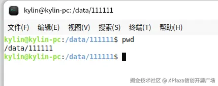 在桌面空白处打开终端,输入命令:mv /home/kylin/.xwechat /data/111111/,将当前用户家目录下.xwechat目录迁移到新建的/data/111111目录下。