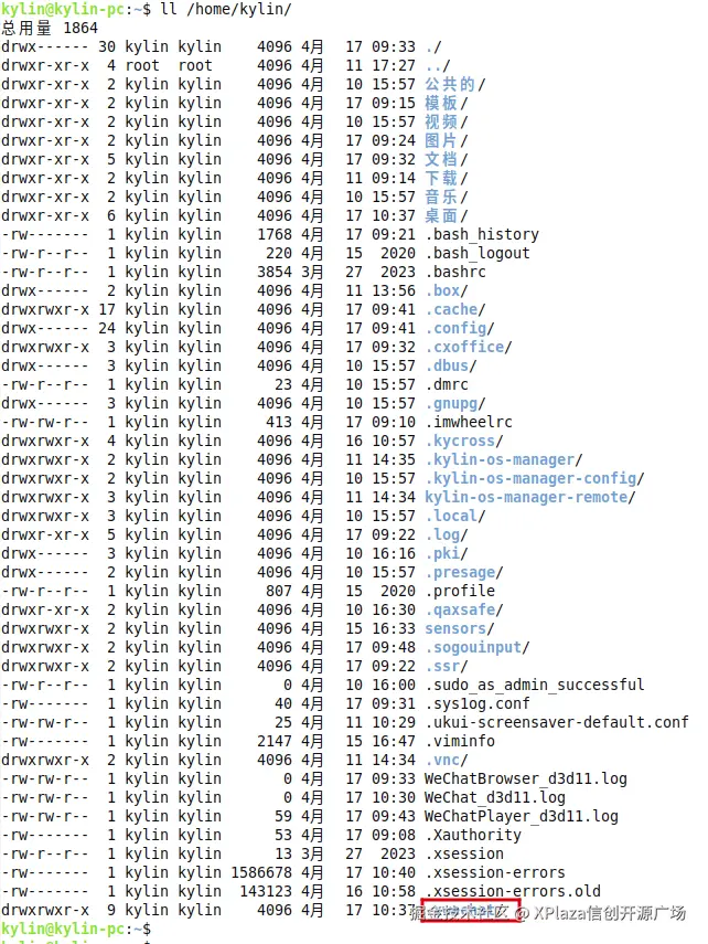 例如:/home/kylin/.xwechat目录占用系统空间较大,但是由于保存了缓存记录不想删除,此时可以将其迁移到别的目录下。(备注:/home目录为各个账号的家目录,例如此处“/home/kylin”目录就是kylin账号的家目录,是不建议迁移到别的目录下。)